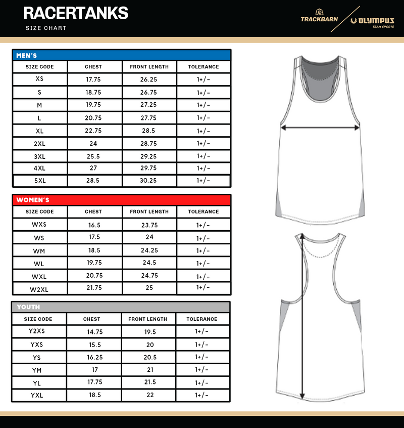 RACER TANKS SIZE CHART