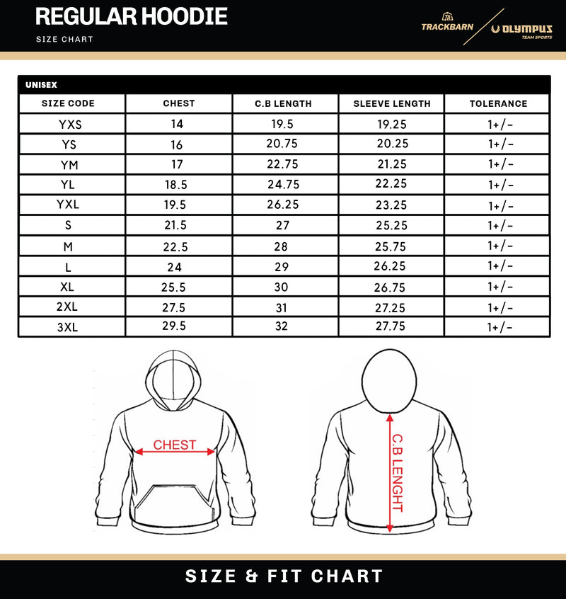 REGULAR HOODIE SIZE CHART